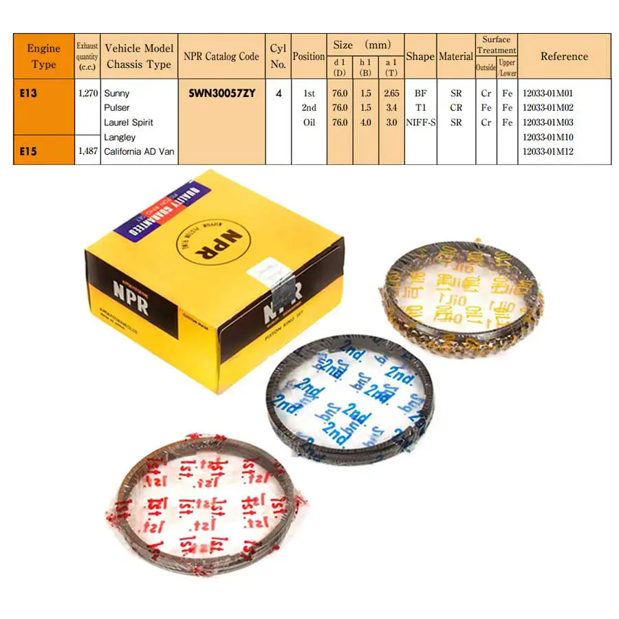 Rings Set Nissan Sunny E13, E15 Eng., 76mm, SWN30057ZZ NPR